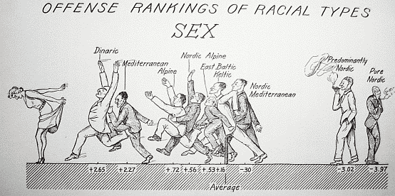 Estas ideas perduraron hasta bien entrado el siglo XX. El antropologo Earnest Hooton publicaba en 1939 Crime and the Man y The American Criminal conluyendo que los delincuentes eran biológicamente inferiores y que determinados grupos etnoraciales eran mas comunes en particulares formas delictivas. Para hacer más atractiva sus ideas, Hooton tomó la decisión, sin duda desaconsejable, de ilustrar su texto con un estilo de un mal gusto asombroso.