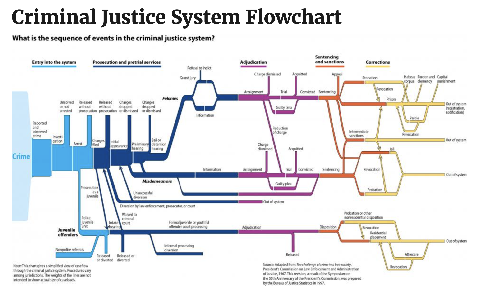 “En la mayoría de los delitos conocidos por la policía, nadie es arrestado. Cuando hay un arresto, la mayoría de los casos nunca se envían al fiscal. De los casos que llegan a juicio, la mayoría conducen a un acuerdo entre el abogado y el fiscal, no a un juicio. De los que llegan a juicio, es mucho más probable que se celebre un juicio sin jurado en un tribunal … local que un juicio con jurado en toda regla, como se ve en la televisión. Incluso las personas condenadas tienen muchas posibilidades de evitar el encarcelamiento, a pesar de varias décadas de políticas de «ley y orden». Por ejemplo, se estimaron unos 3,3 millones de robos en viviendas en Estados Unidos en 2016.11 De ellos, aproximadamente la mitad de los incidentes se denunciaron a la policía. Aproximadamente 1 de cada 10 resultó en arrestos. Estimamos que solo alrededor del 1 por ciento de los robos dan lugar a una condena y aún menos a encarcelamiento. La probabilidad de ser castigado por un delito relacionado con las drogas es aún mucho menor.”